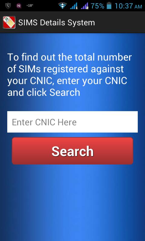 Este aplicativo está recuperando dados da Autoridade de Telecomunicações do PTA Paquistão. Você pode encontrar o total de não de Sims registrados no seu CNIC on -line, digitando o número do cartão de identidade nacional neste aplicativo.