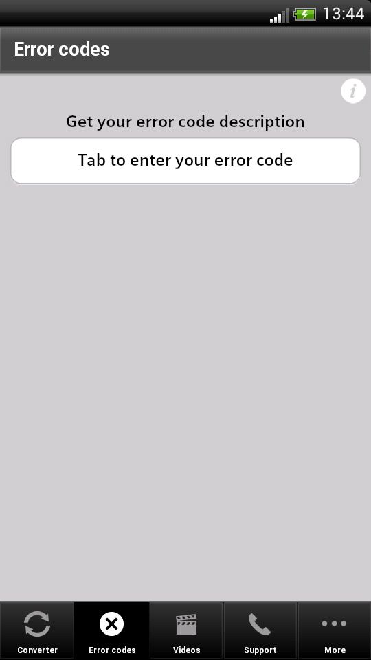 O código de erro da função ajuda você a identificar e remediar erros. Basta inserir o código de erro mostrado na unidade de velocidade variável e o aplicativo explica o que significa e o que fazer para corrigir o erro.