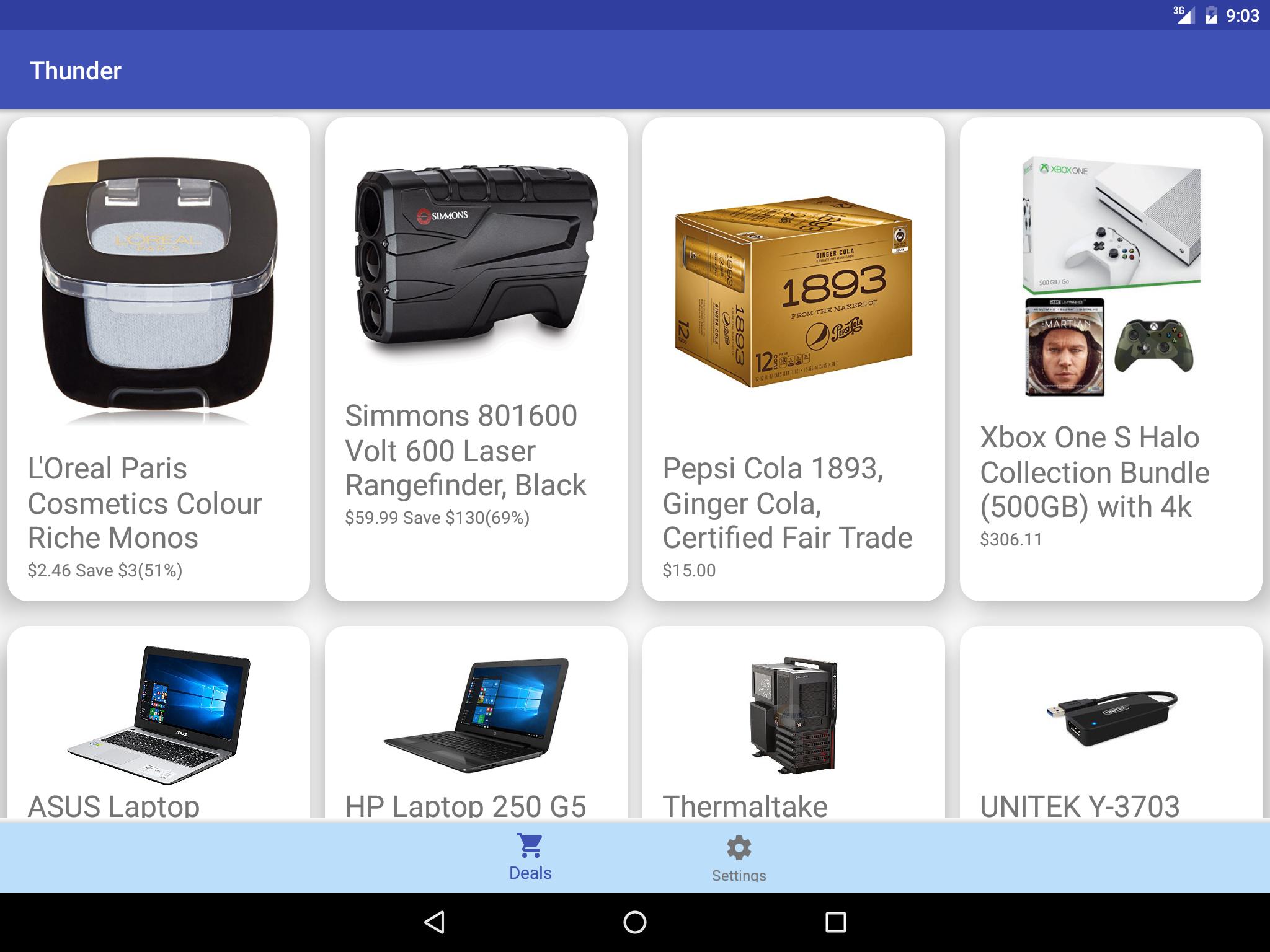 O Thunder permite procurar facilmente os preços de um produto, além de melhores ofertas, especificações e críticas, com o Thunder procurando os melhores preços on-line e na loja. Você também pode definir o aplicativo de compras para oferecer alertas quando ofertas ou quedas de preços ocorrem nos itens da sua lista de observação.