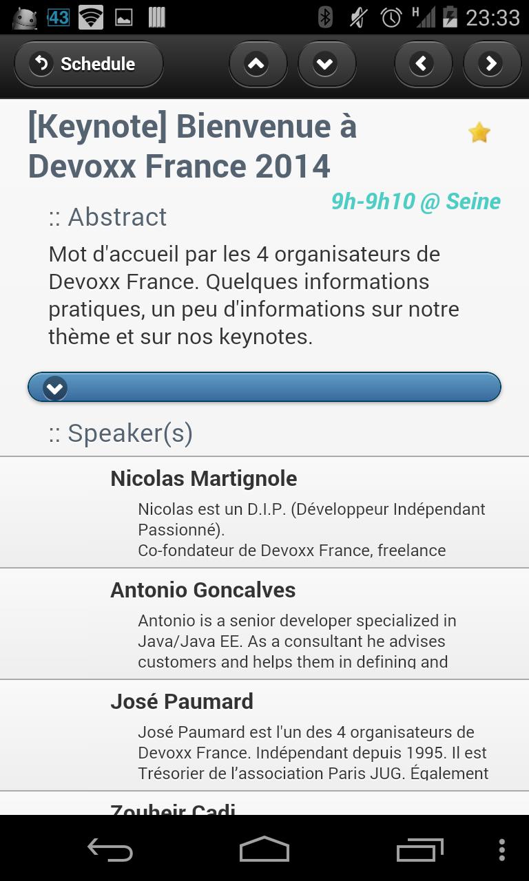 Conferências suportadas: Devoxx, Devoxx France (Devoxxfr), Mixit, Lean Kanban France, Le Breizhcamp, Le JugsummerCamp, Codeurs En Seine.