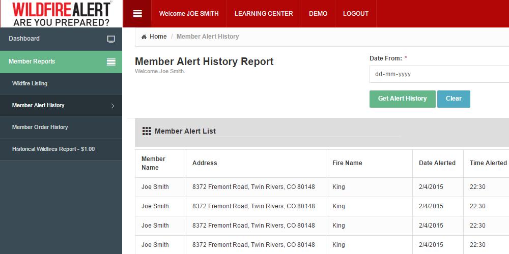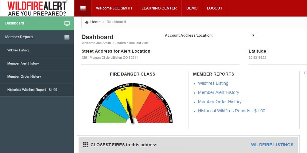 Incluído com uma associação básica; a capacidade de inserir um local permanente da propriedade. O site consultará as bases de dados do USGS para incêndios florestais ativos dentro de um raio de 160 quilômetros do local da propriedade do membro. O membro pode visitar o site e ver informações sobre esses incêndios, além de mapas mostrando o local dos incêndios florestais em relação aos membros identificaram o local da propriedade.