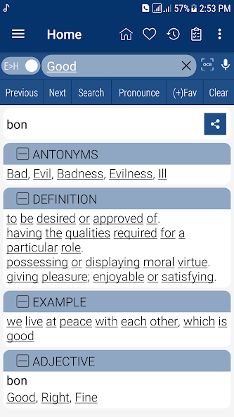 Это приложение сочетает в себе практичность словаря с удовольствием обучения инструментов, игр. Благодаря своей функции OCR, настраиваемым темам и обширной базе данных Word, этот словарь - это больше, чем просто инструмент - это ваш партнер в мастерстве гаитянского креольского и английского языка.