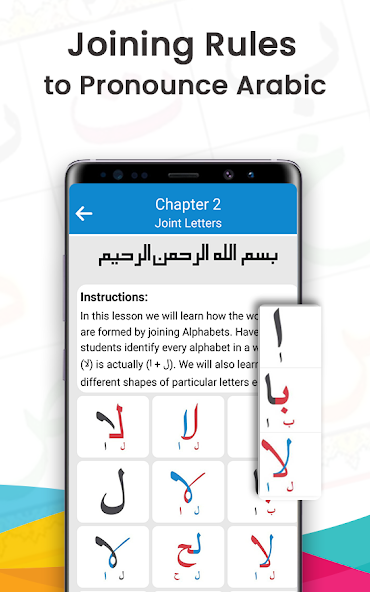 В приложении в серии Qida есть главы - В отличие от других, это приложение классифицируется в формах глав, которые составляют 17. Исламское приложение серии кайды начинается с арабских алфавитов базовых, пользователю предшествует формирование слов, а затем предложения, используя правильное произношение алфавитов.