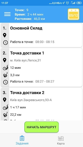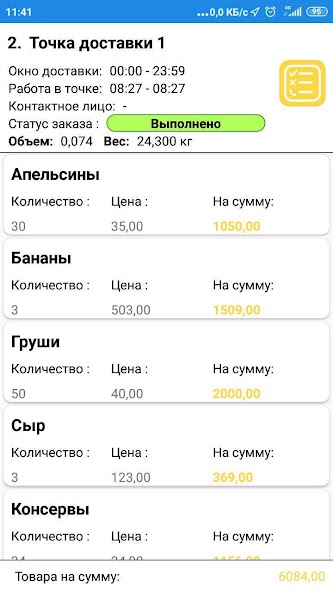 Способность получить план путешествий для просмотра в виде таблицы листа маршрута и на карте, способность отметить выполнение задач или причины неудачных поставки, сообщая центральный офис о деньгах, собранных на маршруте и о наличии возврата.