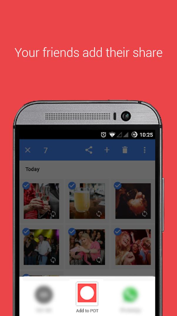 • Просто - поделитесь прямо из галереи вашего телефона. Выберите фотографии, которыми вы хотите поделиться, и просто нажмите «Добавить в Pot ».