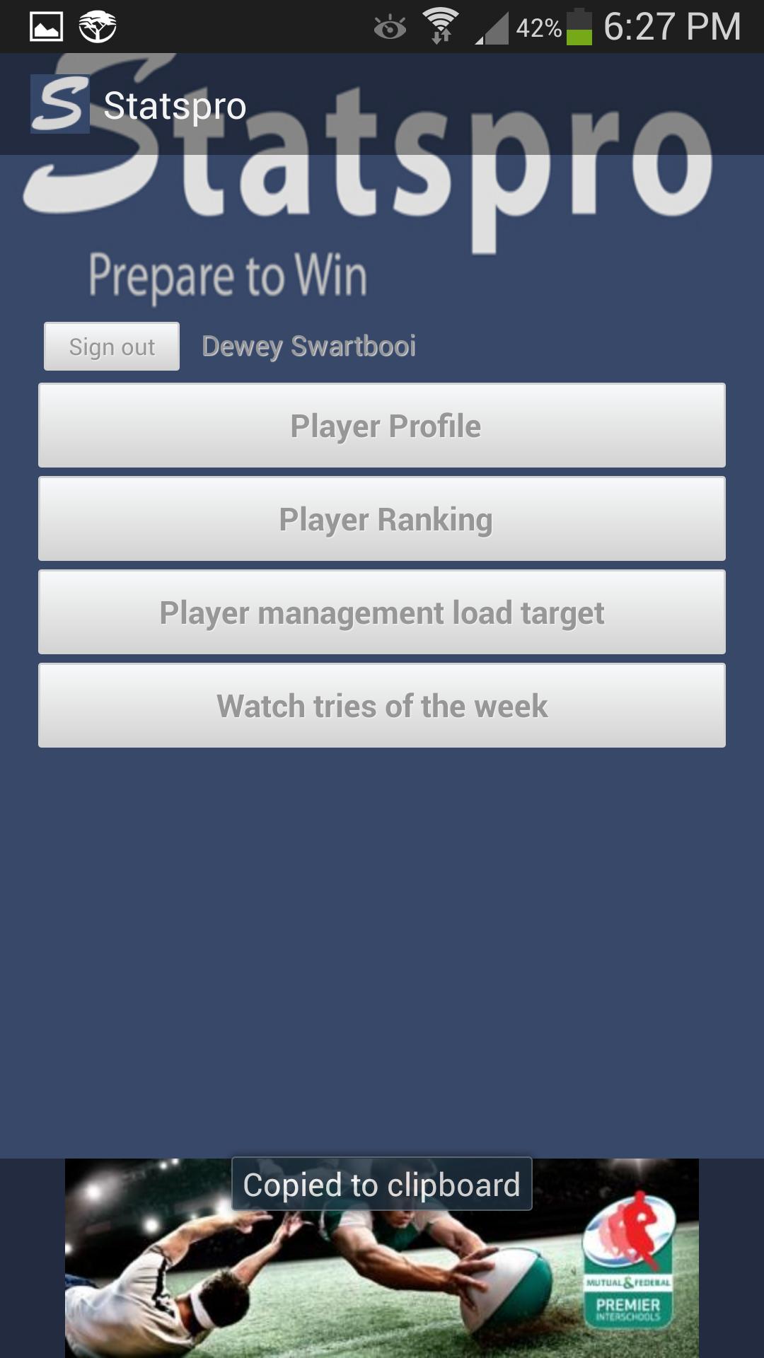 Игроки имеют доступ к своей средней статистике сезона, видео о последних попытках и рейтинге игроков. Кроме того, как часть системы управления игроками, аффилированные игроки могут ответить на 10 вопросов в день, касающиеся их обучающей нагрузки, восстановления и статуса травм.