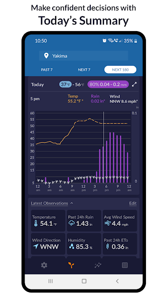 • Создание краткосрочных до долгосрочных планов с использованием прогнозов погоды в течение последних 7 дней, следующих 14 дней, следующих 28 дней и следующих 180 дней.