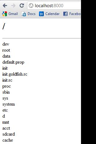 Сервер обмена веб -файлами для Android. Униженная версия WebShare. Вы можете перечислить каталоги и загружать файлы, хранящиеся на вашем телефоне по Интернету, в WiFi или через такую услугу, как Dyndns для вашего мобильного оператора IP.