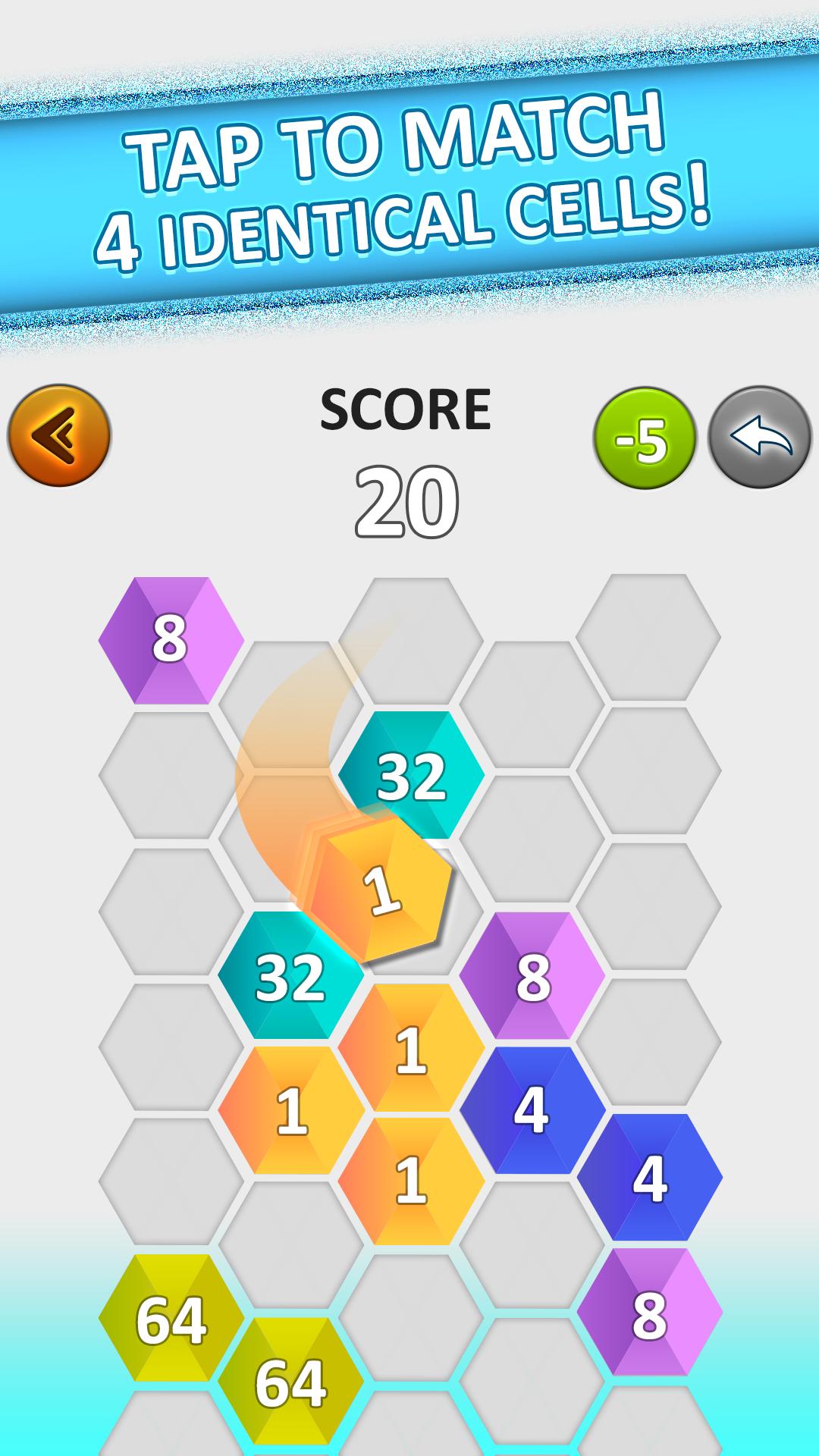 Переместите ячейку с одинаковым количеством одного и того же цвета вместе. Когда вы подключаете ячейки, числа складываются, чтобы сформировать новый блок объединенного числа. Если перемещение блока не приводит к Cell Connect , на игровой доске появятся 4 новые блоки.