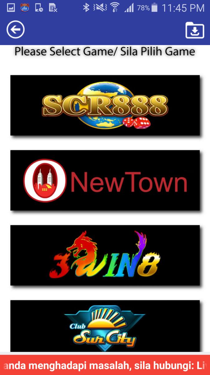 Одно приложение поддерживает все игры: scr888/newtown/3win8/suncity