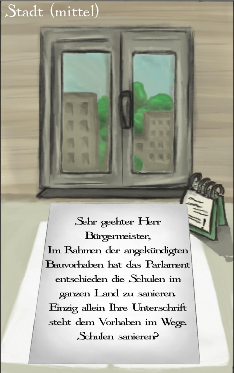 Решения, вы становитесь могущественным мегаполисом. Каждый раунд вы получаете новую проблему. Ваши решения влияют на все пять факторов из вашей страны: деньги, население, счастье, окружающая среда и их влияние на их страну. Если один из этих факторов становится слишком низким, вы умираете. Игра решений, политики, стратегии и выживания. Подготовьте свои навыки в качестве руководства из города, и проведите, чтобы развить самую мощную страну с всех времен!