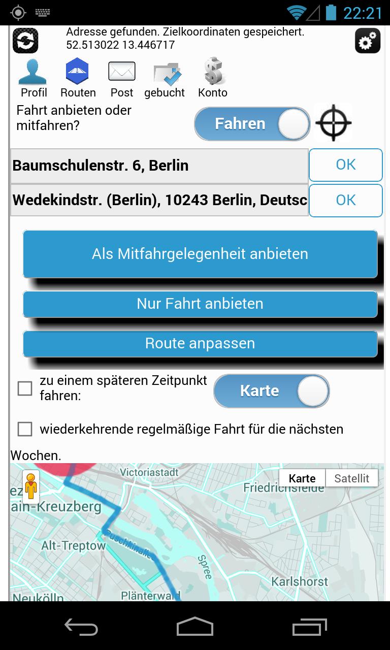 Ad Hoc Carsharing, 0 €, ใช้เป็นแอพนำทาง, Urban, ระยะสั้น, SMS ผลักดัน