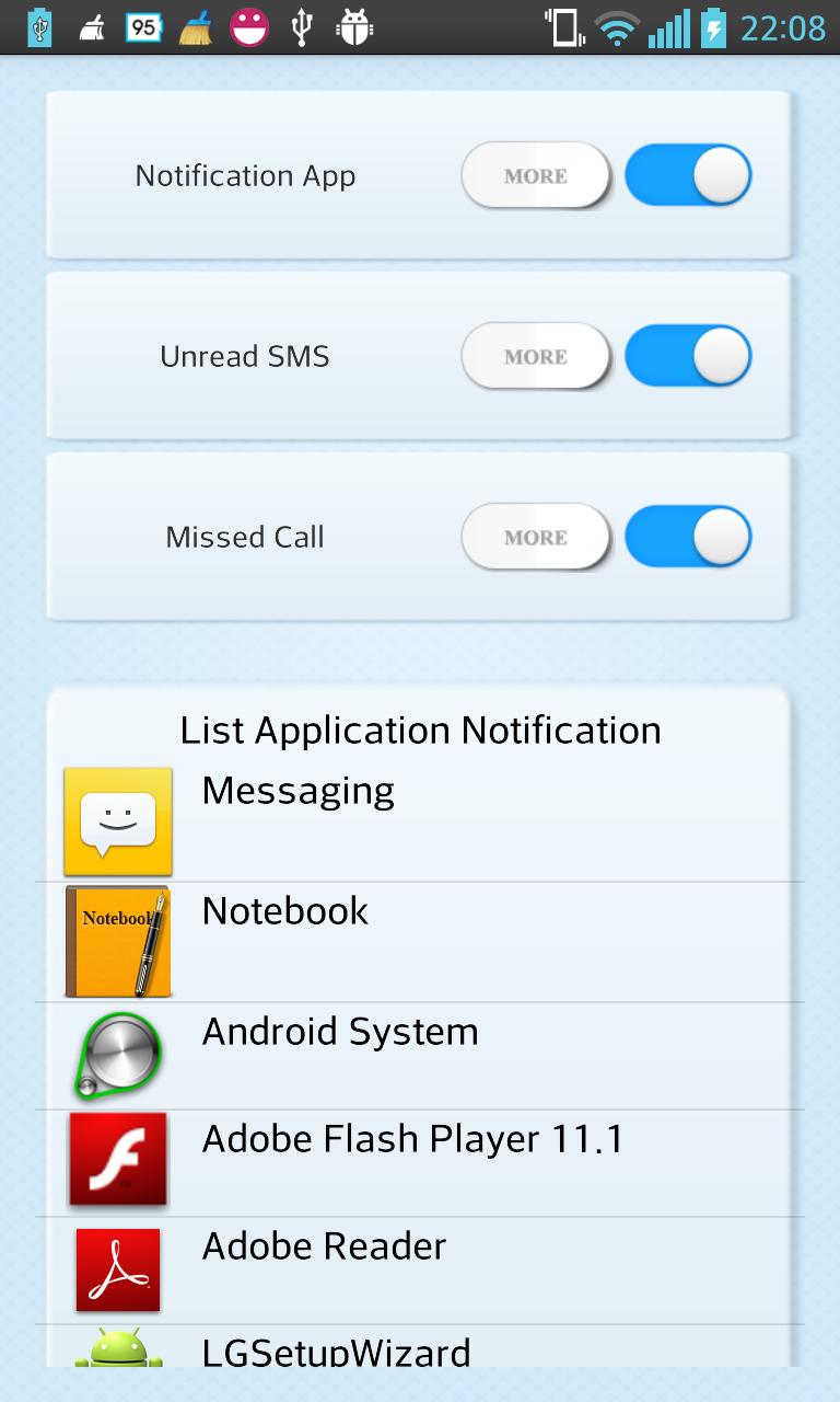 - แฟลชกะพริบเมื่อมีการแจ้งเตือนใหม่มาในแอพที่เลือก