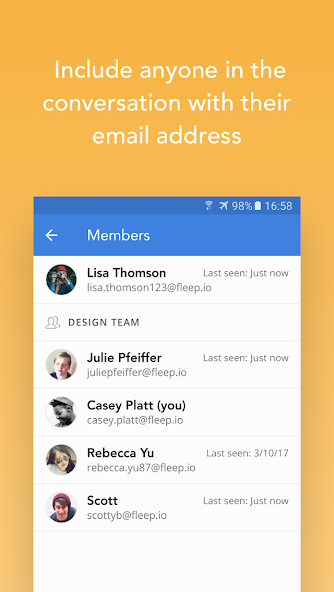 * เพิ่มผู้คนในการสนทนาและทีมที่อยู่อีเมลของพวกเขา - และพวกเขาจะได้รับข้อความเป็นอีเมลจนกว่าพวกเขาจะลงทะเบียนเพื่อ Fleep ;