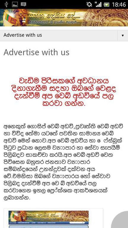 Ganna Deshiya De เป็นแอพพลิเคชั่นง่ายๆที่ช่วยให้คุณสามารถติดต่อกับการสร้างสรรค์และข่าวล่าสุดในศรีลังกา