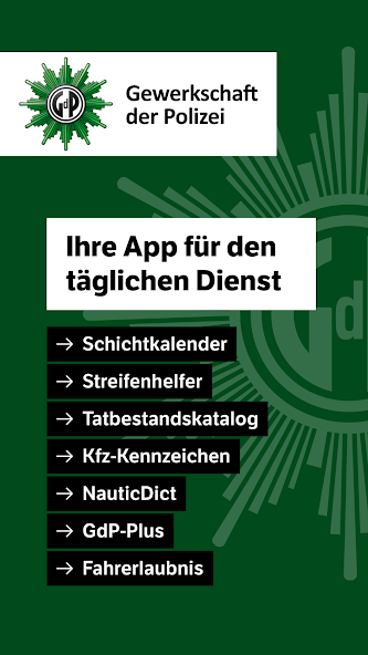 แอพ GdP พิเศษนำเสนอเครื่องมือที่ใช้งานได้ซึ่งสนับสนุนตำรวจในการทำงานประจำวันของพวกเขาและมีประโยชน์สำหรับการทำงานของผู้ที่สนใจและสถาบันอื่น ๆ ด้วยเวอร์ชันใหม่การดำเนินการนั้นง่ายยิ่งขึ้น