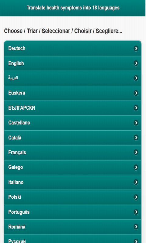 คุณกำลังเดินทางและคุณไม่รู้จะบอกว่าคุณปวดท้องได้อย่างไร? คุณเพิ่งอยู่ในประเทศและคุณยังไม่เชี่ยวชาญภาษาของคุณ? ด้วยความช่วยเหลือของนักแปลนี้ใน 18 ภาษาคุณจะสามารถอธิบายอาการที่คุณต้องทนทุกข์ทรมานจากเภสัชกรแพทย์ครู ฯลฯ มันจะเป็นประโยชน์กับคุณอย่างแน่นอน