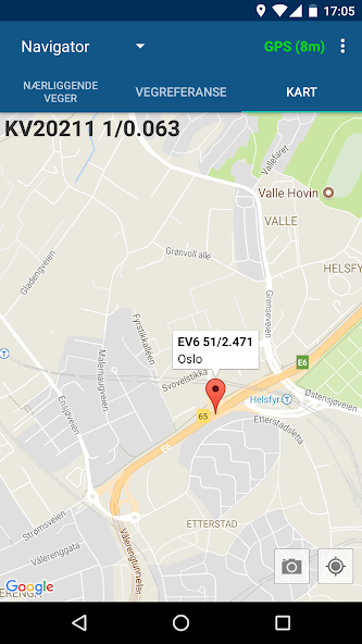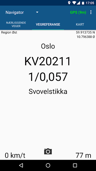 เครือข่ายถนนที่ดึงมาจาก NVDB และเก็บไว้ในเครื่องบนอุปกรณ์ดังนั้นเราจึงไม่จำเป็นต้องใช้เต้าเสียบพลังงาน โปรแกรมมีฟังก์ชั่นการจับภาพด้วย Vegreferanse ที่ระบุไว้ในพวกเขาและหนึ่งสามารถใช้ vegreferanser ตามที่สามารถเห็นได้ในแผนที่หรือนำทาง