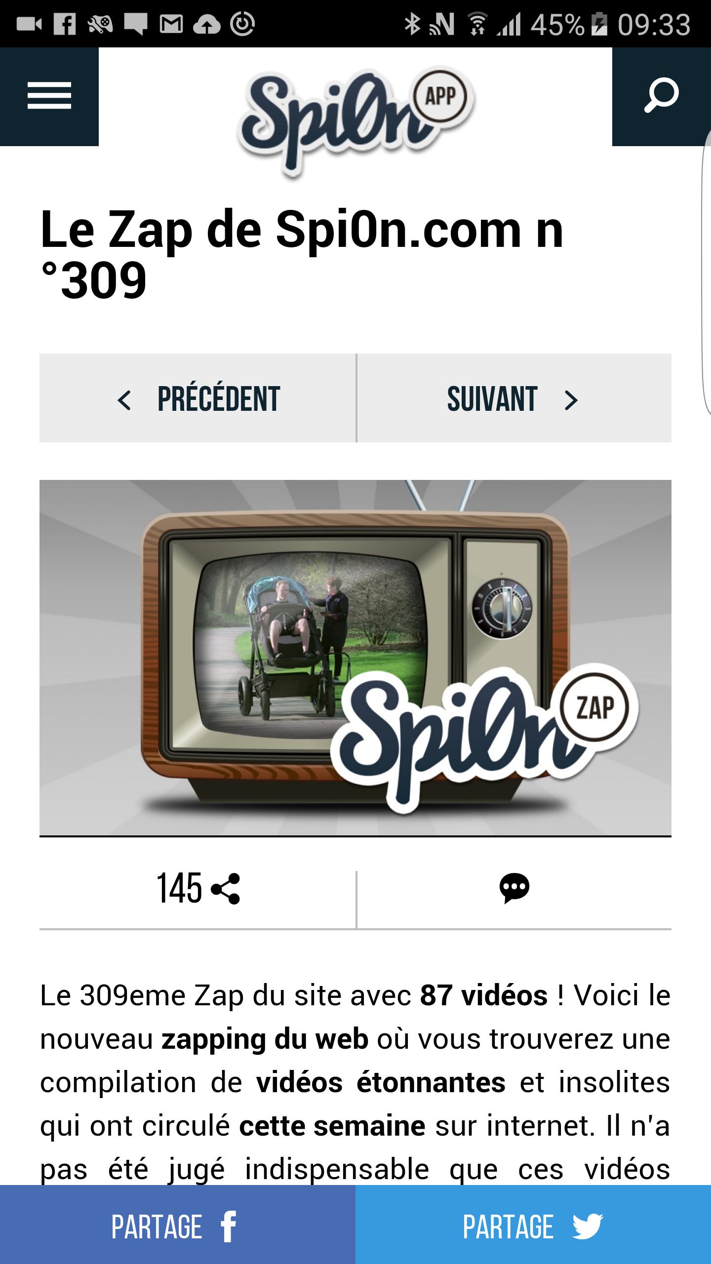 ในแต่ละวันหยุดสุดสัปดาห์ตั้งแต่วันที่ 27 มกราคม 2010 ผู้ดูแลเว็บไซต์เสนอวิดีโอควบแน่นที่ดึงดูดความสนใจของเขาในช่วงสัปดาห์ในรูปแบบของ zapping หลายนาทีที่มีชื่อว่า "Le Zap de Spi0n "