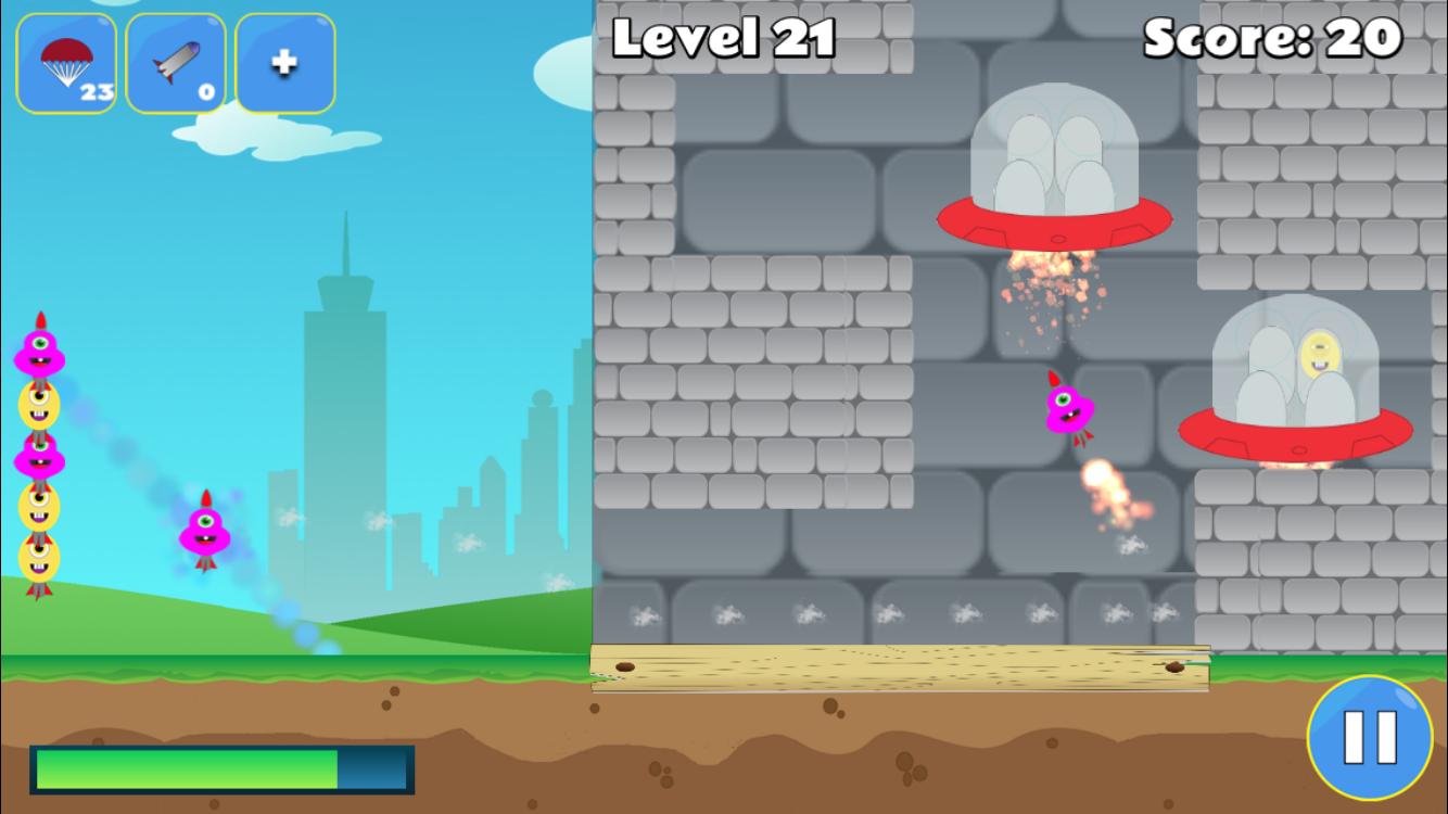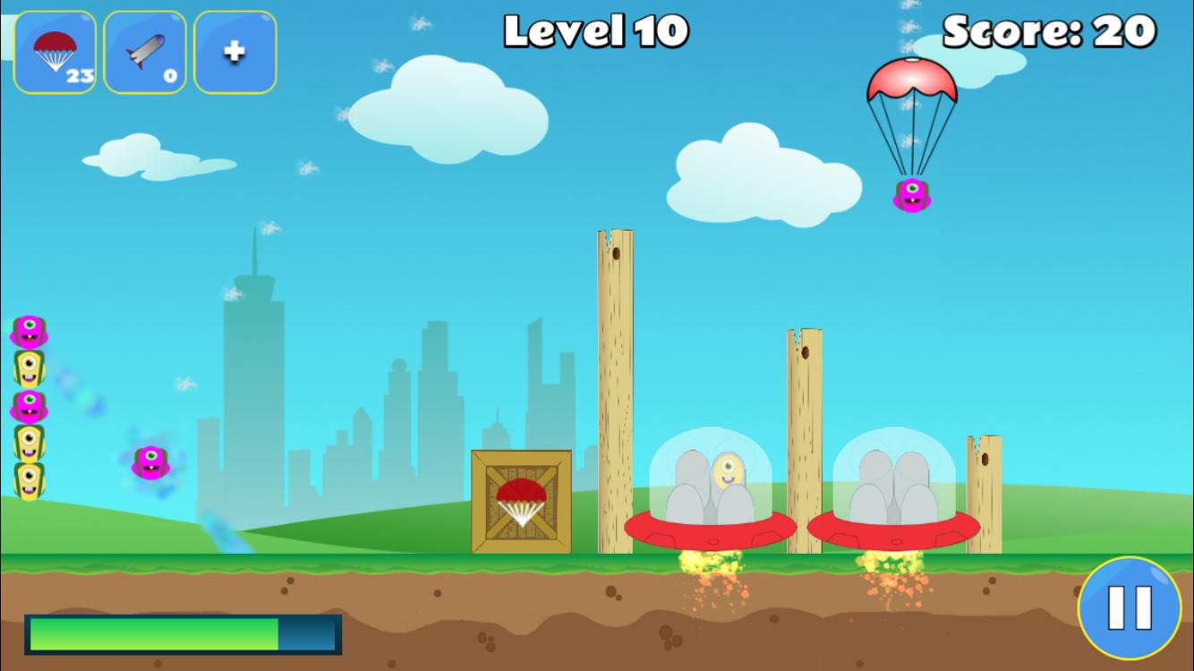 ใช้อุปกรณ์เปิดตัวการอพยพของมนุษย์ต่างดาวของคุณเพื่อเป็นแนวทางของมนุษย์ต่างดาวที่เป็นมิตรในพ็อดหลบหนีและออกไปเพื่อความปลอดภัย สิ่งนี้จะต้องใช้ทั้งความแม่นยำและความสามารถในการแก้ปริศนาเพื่อเอาชนะอุปสรรคเช่นแพลตฟอร์มที่เคลื่อนที่แทรมโพลีนและนักล่าขนาดใหญ่! โชคดีที่คุณมีพลังเพิ่มขึ้นเพื่อช่วยคุณเช่นร่มชูชีพและแพ็คจรวดนำทาง