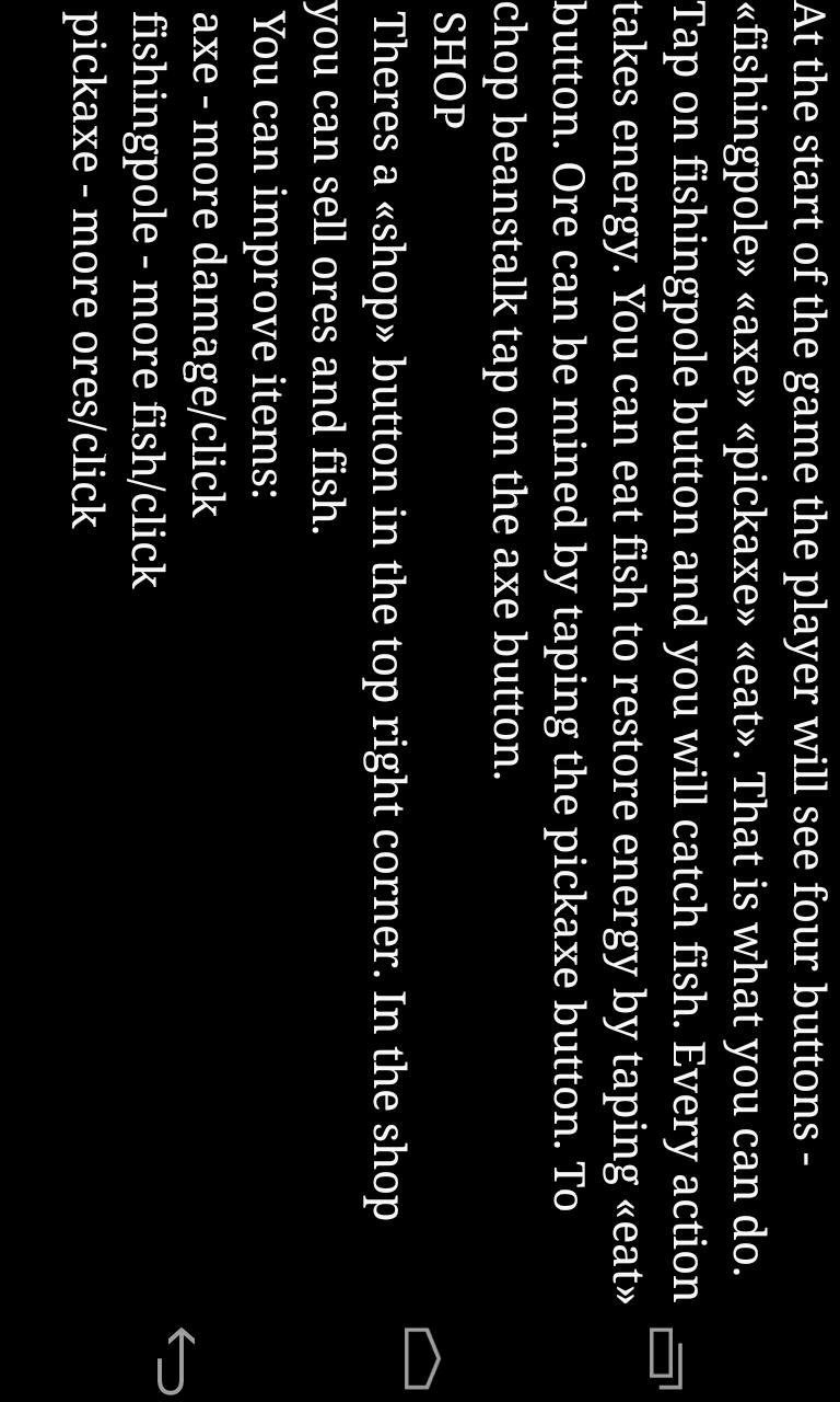 จำเรื่องราวของ Jack and the Beanstalk ได้ไหม? ในเกมกลยุทธ์นี้คุณต้องตัดถั่วลง เป็นการยากที่จะจินตนาการว่าต้องใช้เวลาเท่าไหร่ อาจใช้เวลาทั้งชีวิต! ดังนั้นคุณต้องเติบโตและสร้างโครงสร้างพื้นฐานเล็กน้อย นอกเหนือจากภารกิจหลักในการตัดถั่วคุณจะสามารถขุดแร่ที่มีประโยชน์ในภูเขาและตกปลาและในที่สุดก็จ้างคนงานสำหรับสิ่งนี้