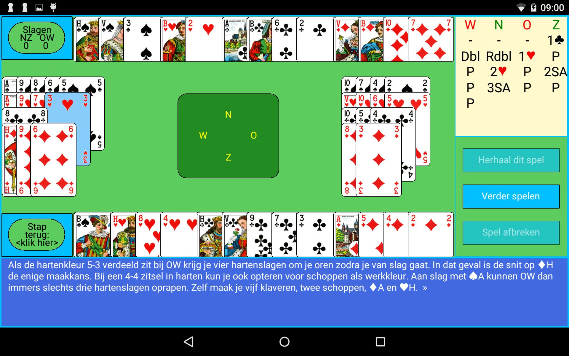 Op naar de top 1 มีไว้สำหรับผู้เล่นบริดจ์เริ่มต้น ทีละขั้นตอนเกมเสร็จสิ้นและในช่วงเวลาสำคัญมีคำถามถามว่าคุณต้องคิด จากนั้นเกมจะเล่นต่อไปและดู (และอ่าน) ว่าทำไมวิธีการเล่นที่เลือกจึงเป็นเกมที่ถูกต้อง