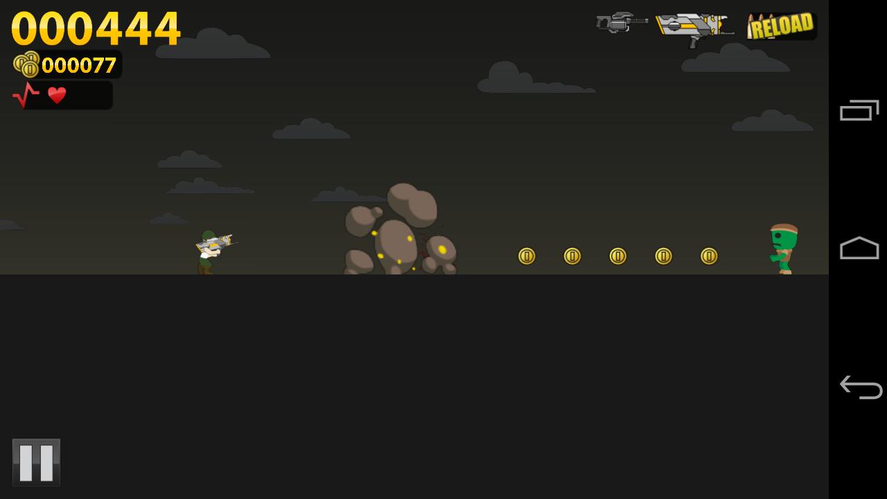 ใช้อาวุธของคุณเพื่อต่อสู้กับทางข้ามหลังคาและอยู่รอดได้นานที่สุดเท่าที่จะทำได้ รวบรวมเหรียญเพื่อปลดล็อกปืนมากขึ้นเพื่อทำให้เกิดการทำลายล้างมากขึ้น