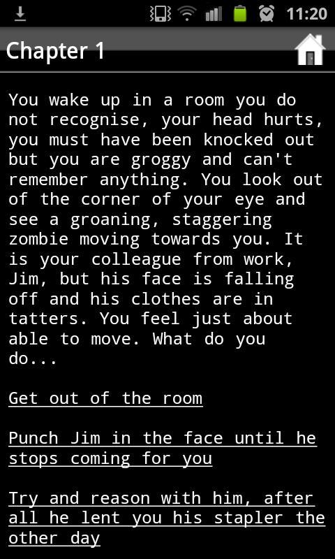 เลือกเกมผจญภัยของคุณเองที่คุณต้องพยายามเอาชีวิตรอดจากการเปิดเผยของซอมบี้ คุณตัดสินใจที่จะทำให้คุณมีชีวิตอยู่หรือทำให้คุณกินซอมบี้กินเนื้อสัตว์ The Walking Dead สามารถเกิดขึ้นได้จากทุกที่และคุณต้องมีปัญญาเกี่ยวกับคุณ คุณจะอยู่ห่างจากความตายนานพอที่จะอยู่รอดและไปยังจุดสกัดได้หรือไม่? คุณจะได้รับสมองของคุณกินโดย The Walking Dead หรือไม่? โดยไม่มีคู่มือการเอาชีวิตรอดคุณจะต้องต่อสู้กับสงครามกับ Undead โดยใช้สัญชาตญาณของคุณ