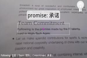 从手机相机中提取单词文字并提供在线翻译。只需将相机瞄准单词,翻译的结果就会立即在屏幕上显示。