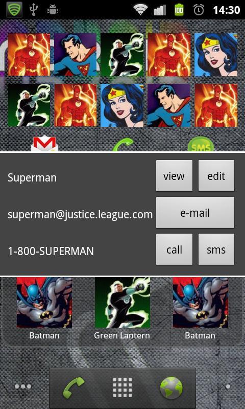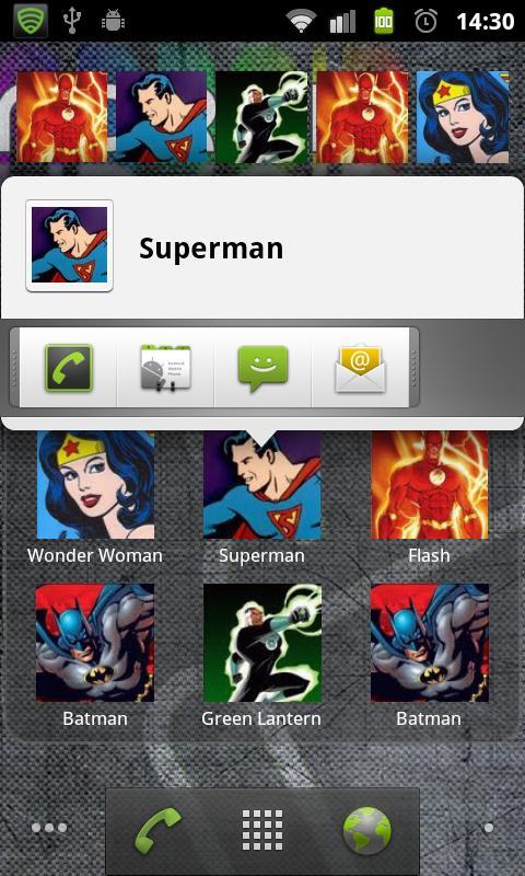 - 联系小部件。如果单击联系人图片,则可以轻松发送电子邮件,短信或拨打电话。图标的标签是触点的昵称。