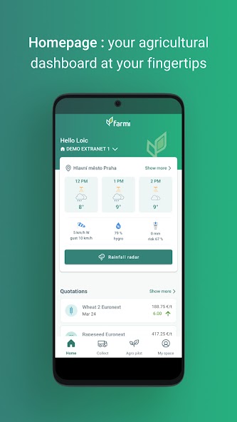 农业天气:我们的野心是带来可靠的天气,以促进决策,并通过优化的人体工程学设计供该领域使用。