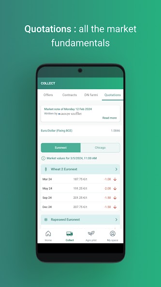 - 在线合同化(目前仅适用于捷克共和国和罗马尼亚): Farmi允许Soufflet Agro客户咨询谷物和油料种子的报价,并直接从该申请中签订合同。对于在EuroNext上列出的物种,这些优惠每15分钟更新一次。
