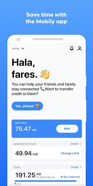 通过全新的Mobily App来控制您的Mobily产品和服务。更新以包括现代,干净和高度直观的外观和感觉, Mobily App简化了您的帐户管理经验,使您可以快速访问所有重要的帐户信息等。随着新功能和改进的定期添加,您将比以往任何时候都做更多的事情。