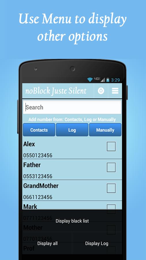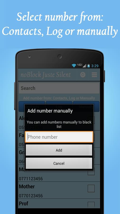 - 个人黑名单 - 添加来自(联系人,日志或手动)的任何电话号码)