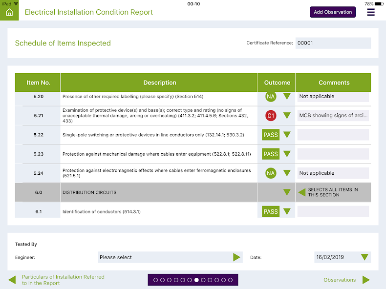 用于Android平板电脑的电气认证软件。生产BS 7671第18版电气安装证书和安装条件在您的Android平板电脑上的报告。