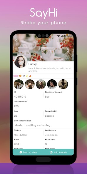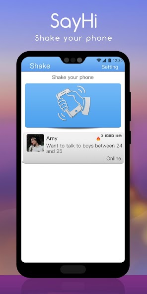 Sayhi的免费便捷聊天插件!您只需摇动手机就可以方便地找到附近的人。因此,不再等待,摇晃设备并发光您的生活!