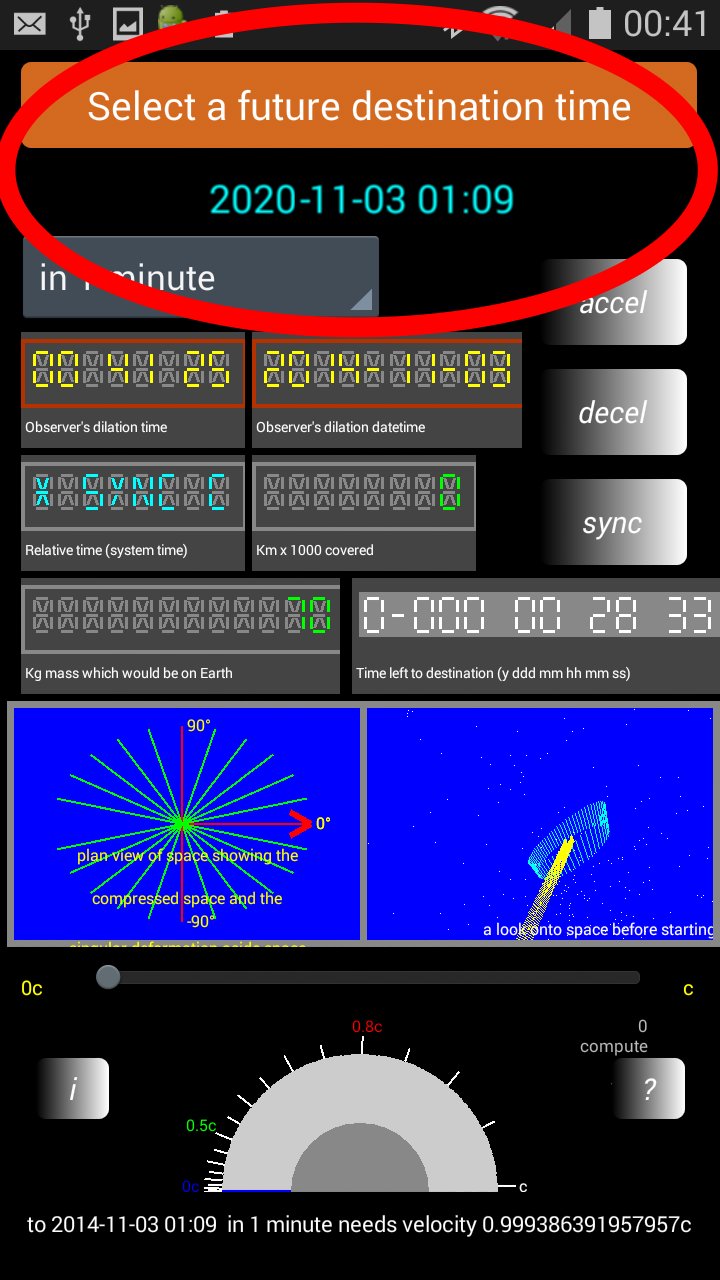 另一个有趣的显示是倒计时,即到达的剩余时间,注意,除了通常的秒数变化外,它还随着速度的变化而变化(这是日常生活中不会发生的事情)。这意味着旅行会影响时钟!