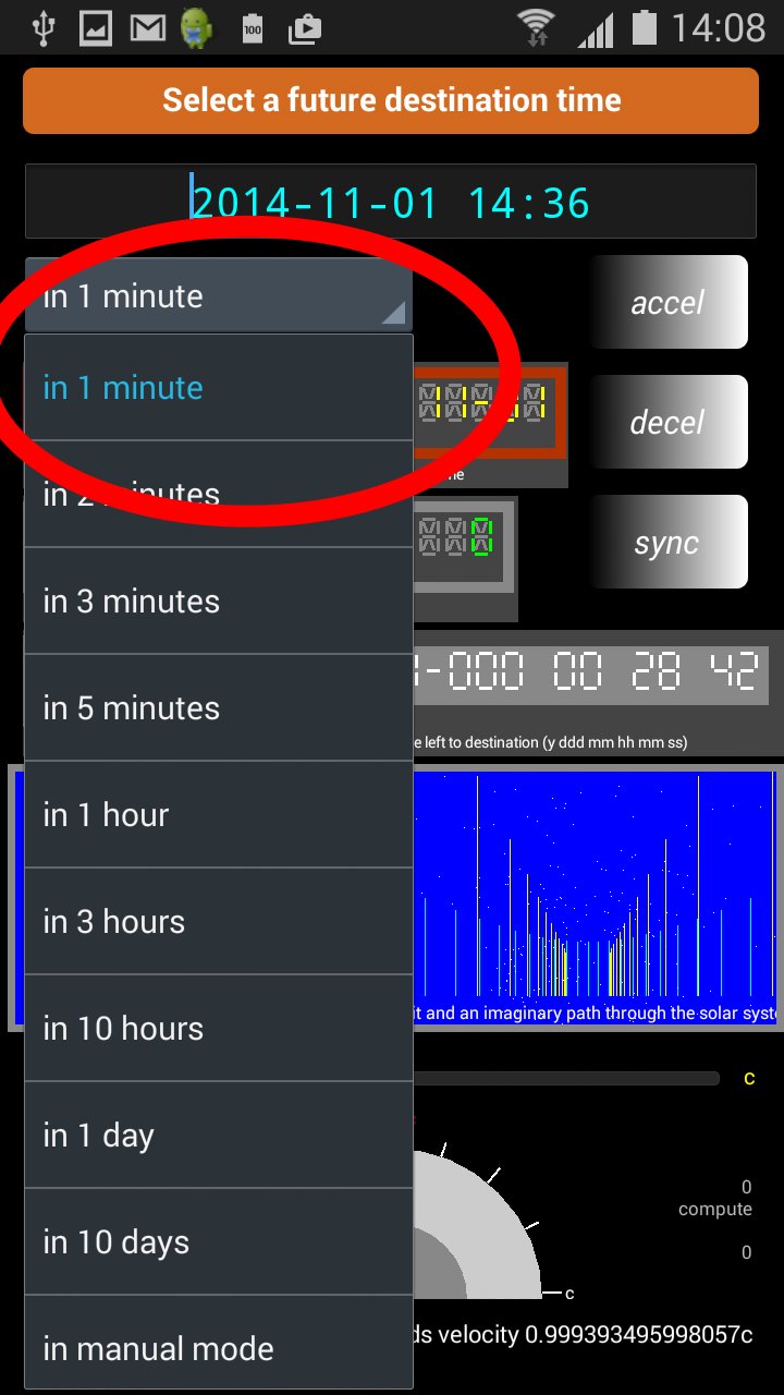 -您想旅行多长时间。因此,选择未来的日期时间作为目的地,单击橙色按钮或以 yyyy-mm-dd-hh-ss-mm 格式输入日期