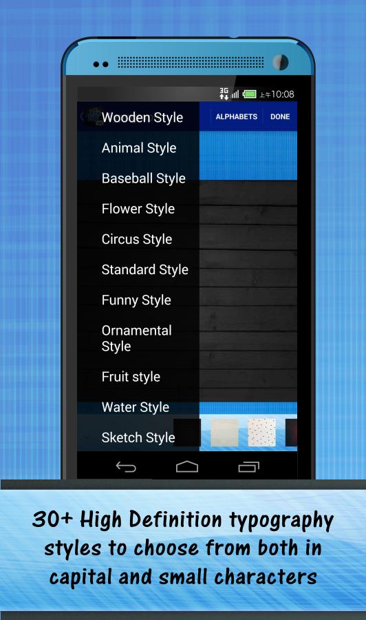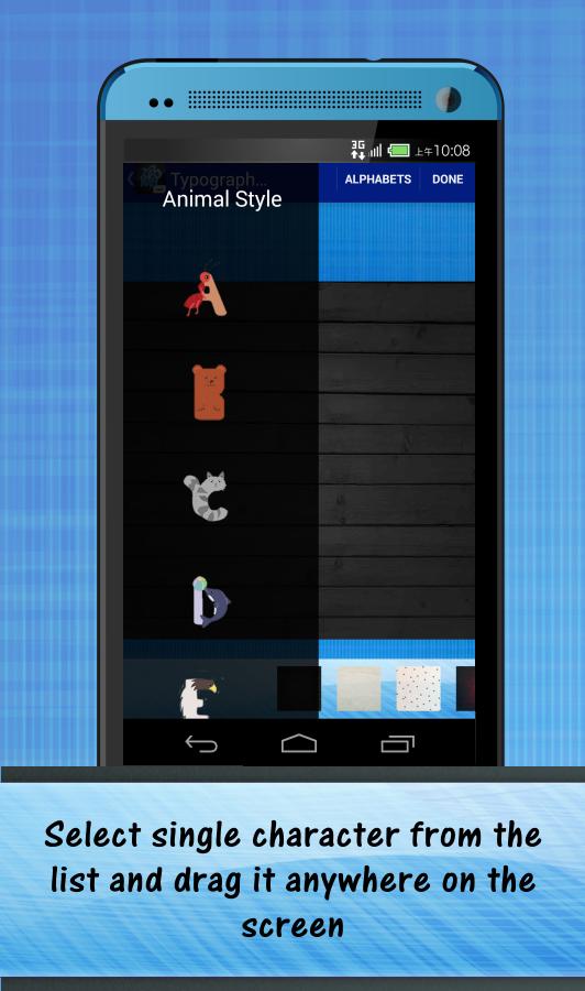 您可以一次选择一个角色,可以根据您的便利性使用不同的字母形状来编写整个单词,也可以从列表中选择背景并在它们上写下您的美丽消息。
