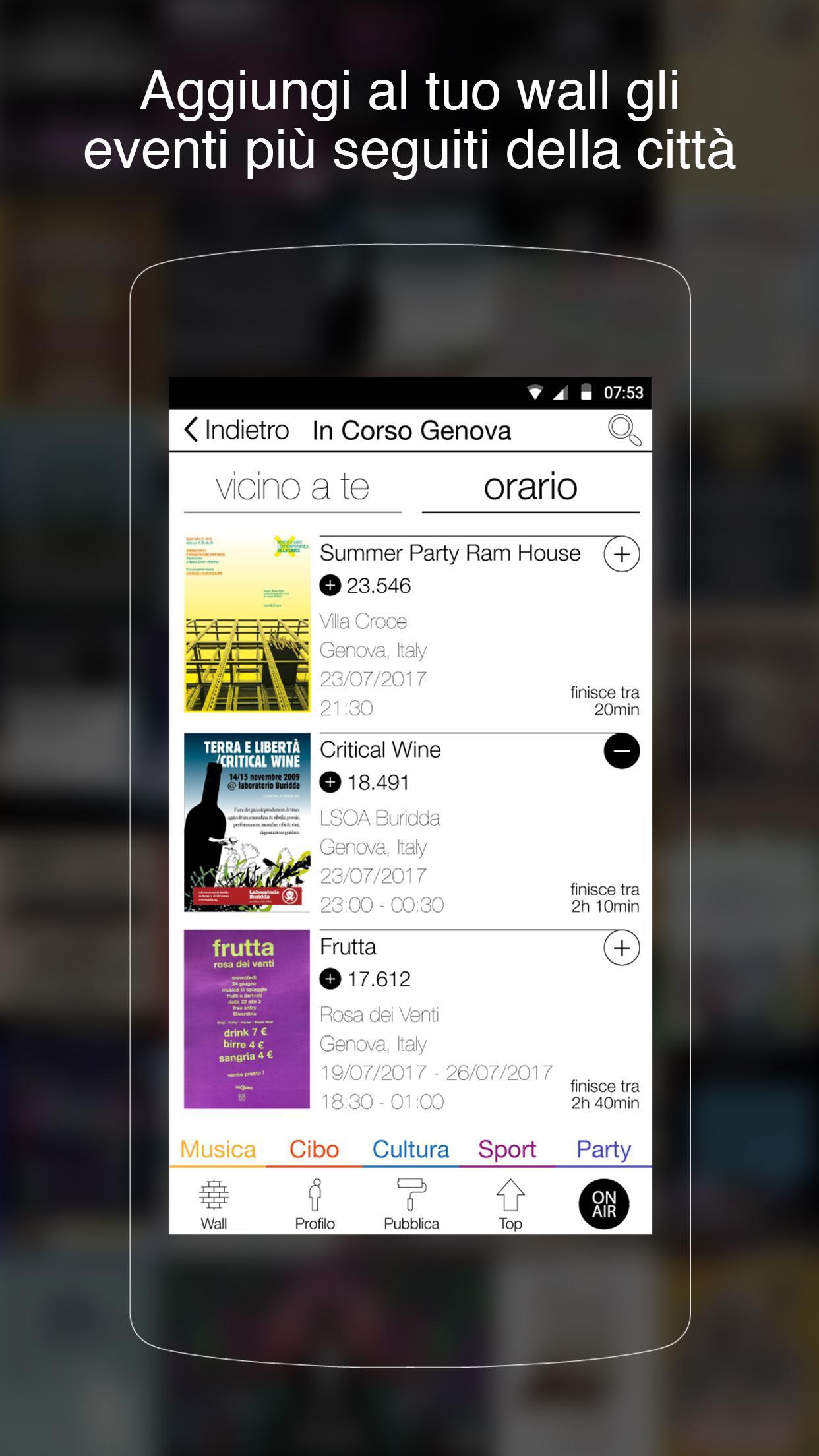 搜索和共享事件。找出与墙的热那亚中有什么要做的事情:在!