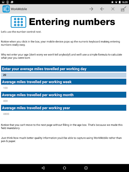 现在,涉及完成基于纸质表单或在电子表格上输入的信息的任何实例都可以在手机或配备WorkMobile的PDA的任何地方完成。