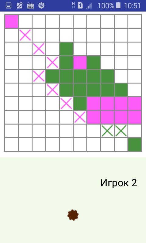 玩家轮流玩。每个都有五个动作。播放器数字1开始(左上角)。如果食用了敌人的牢房,则在其位置形成堡垒,无法再食用。您只有在旁边至少一个牢房中,您才能从要塞中的任何地方步行。游戏的目的是吃掉所有对手的细胞或将其锁定在要塞中并保护自己的牢房。如果在您的回合中,事实证明没有移动的空间,那么失败就被计数了。最初的基础是活动的(您可以从它们中步行),因此,为了获胜,它们也必须被锁定。