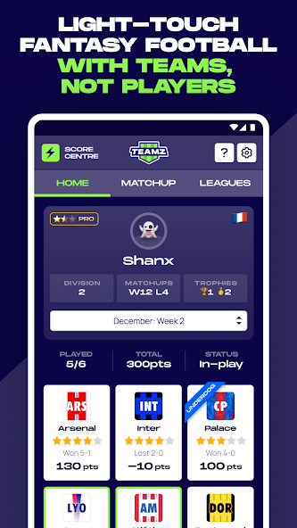 幻想足球不必是个琐事 - 选择球队而不是球员,以获得简化而活泼的幻想足球体验。