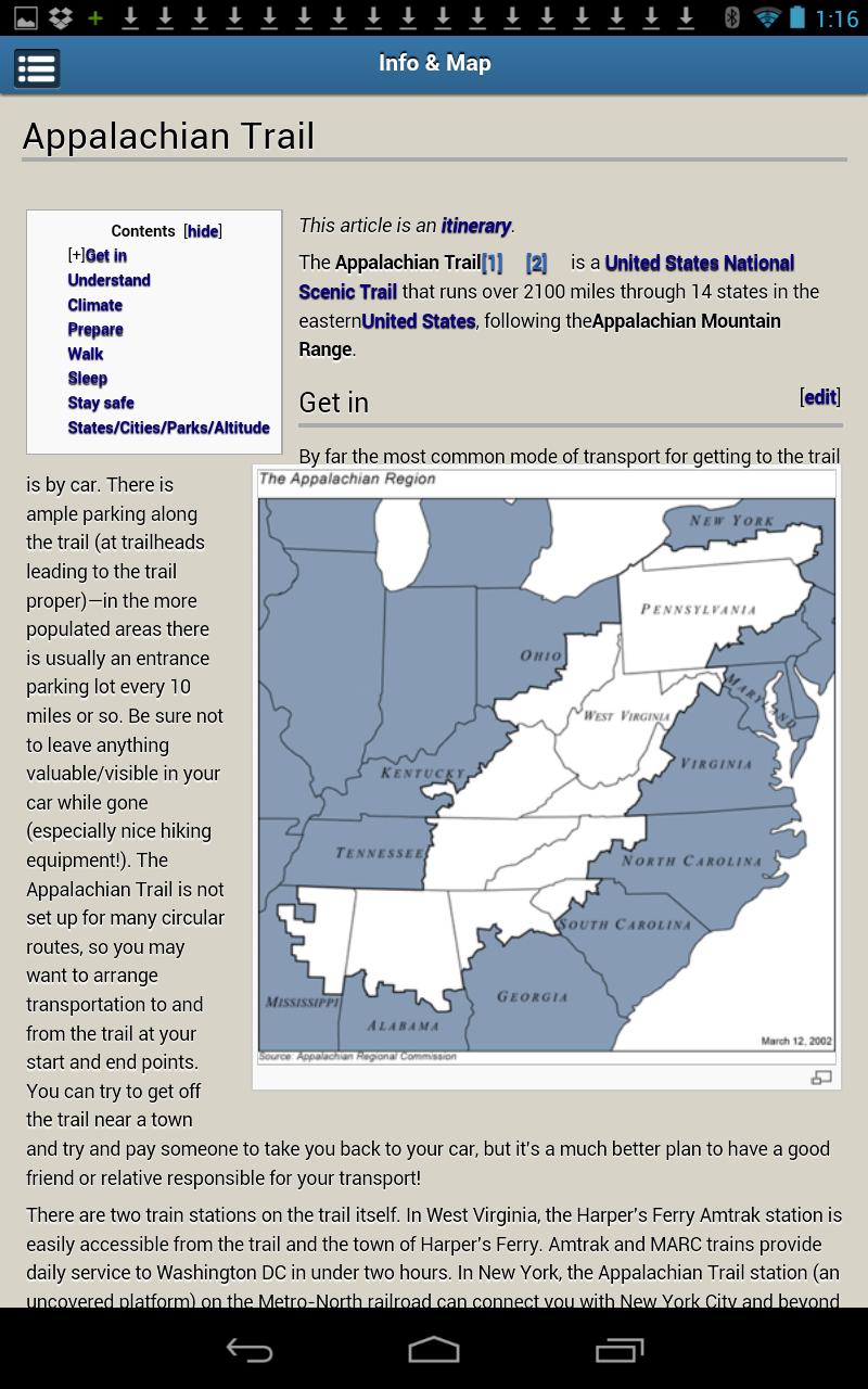 Appalachian Trail信息,交互式地圖,專用的Facebook應用程序頁面,YouTube視頻跟踪指南,本地新聞與活動(以GPS為導向)和汽車定位器,以找到回到汽車的方式。萬一...