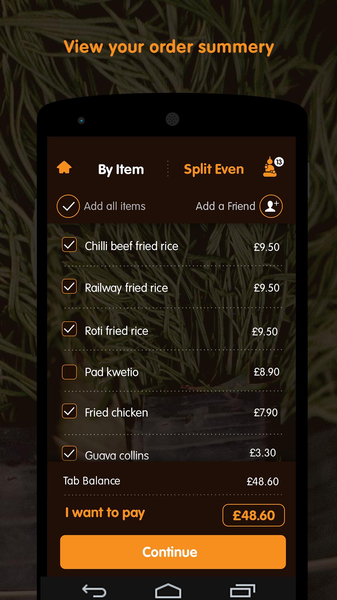 餐桌功能的薪水意味著不再等待賬單;您可以選擇何時付款,而無需標記服務員。在知道誰欠什麼的方面,再也沒有頭痛了;溢出賬單功能使與朋友用餐變得容易。