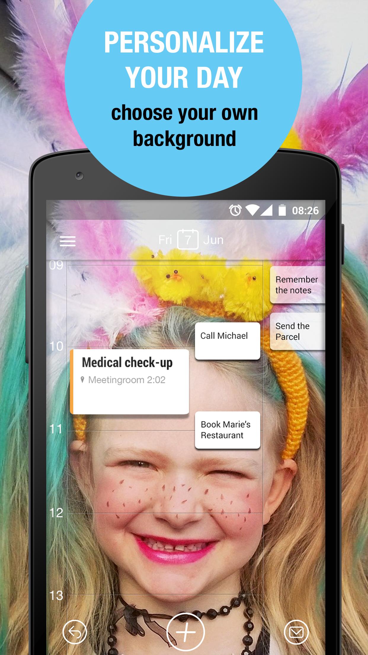 我們可能已經開發了該應用程序,但是這是您坐在其中的一天。我們首先使您可以將背景更改為您選擇的形象 - 一張海灘,家庭照片,您的寵物,度假照片 - 任何使您的一天變得更愉快的東西。您選擇一天的外觀。