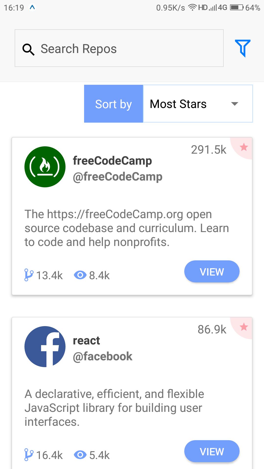 使用ReactiveSearch庫構建的GitHub Repo Explorer應用程序。