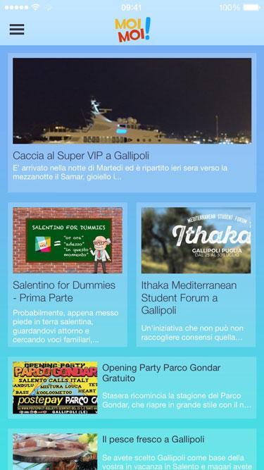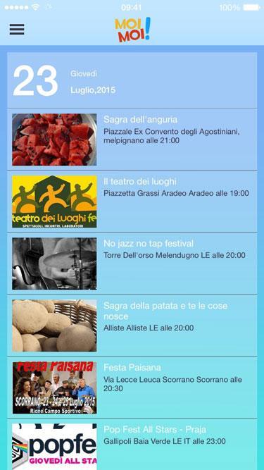 Moi Moi是Salento的指南,它報告了Salento Land中的所有事件,而不僅僅是!繼續使用新聞更新,或者選擇要參觀哪個海灘,MOI MOI將指導您的目的地,甚至為您提供最好的海岸和企業。您想做四跳,不知道要選擇哪個地方嗎? Moi Moi報告了夏天的所有夜生活,這是最有趣的展覽和感興趣的地方。對於那些第一次到達薩倫託的人來說,這是一個完整的,不可替代的指南,對於那些已經喜歡這片美好土地的人來說非常有用。