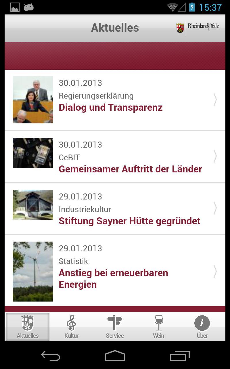 Rheinland-Pfalz州政府還提供移動州門戶網站作為智能手機和平板電腦的應用程序的內容。