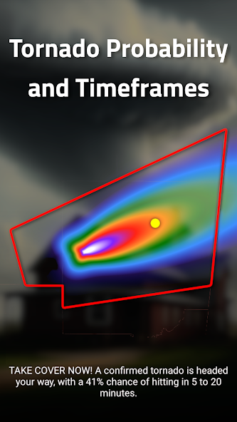 - 根據您的確切位置,官方天氣數據來源以及對歷史趨勢的分析,對龍捲風概率和時間範圍的實時預測。